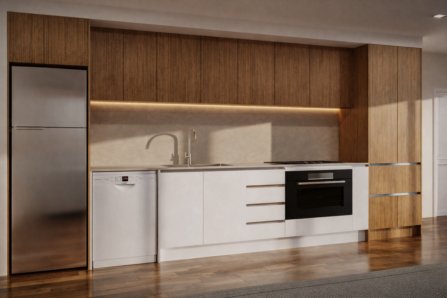 Price includes cabinets, doors, stone benchtops, hardware, proprietary aluminium handles, end panels, kickboards, scribes