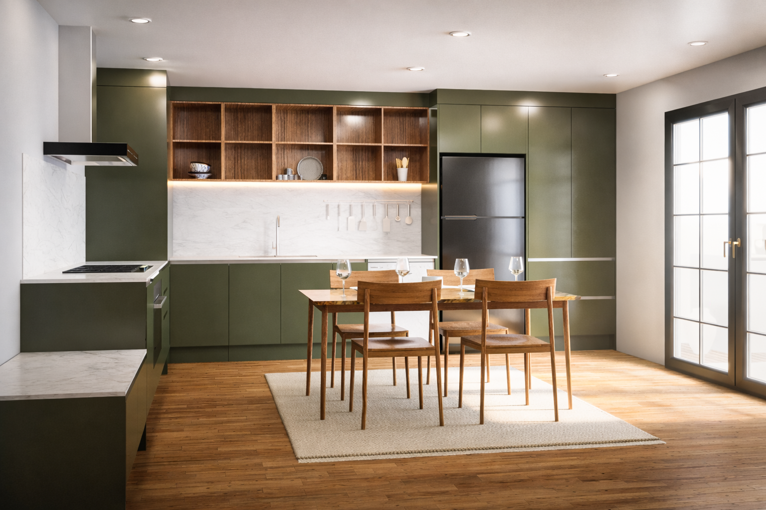 Price includes cabinets, doors, stone benchtops, hardware, proprietary aluminium handles, end panels, kickboards, scribes